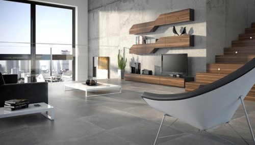 Płytki imitujące beton budują nowoczesny, loftowy klimat i świetnie łączą się z drewnem oraz metalem. To mocna baza do minimalistycznych wnętrz.