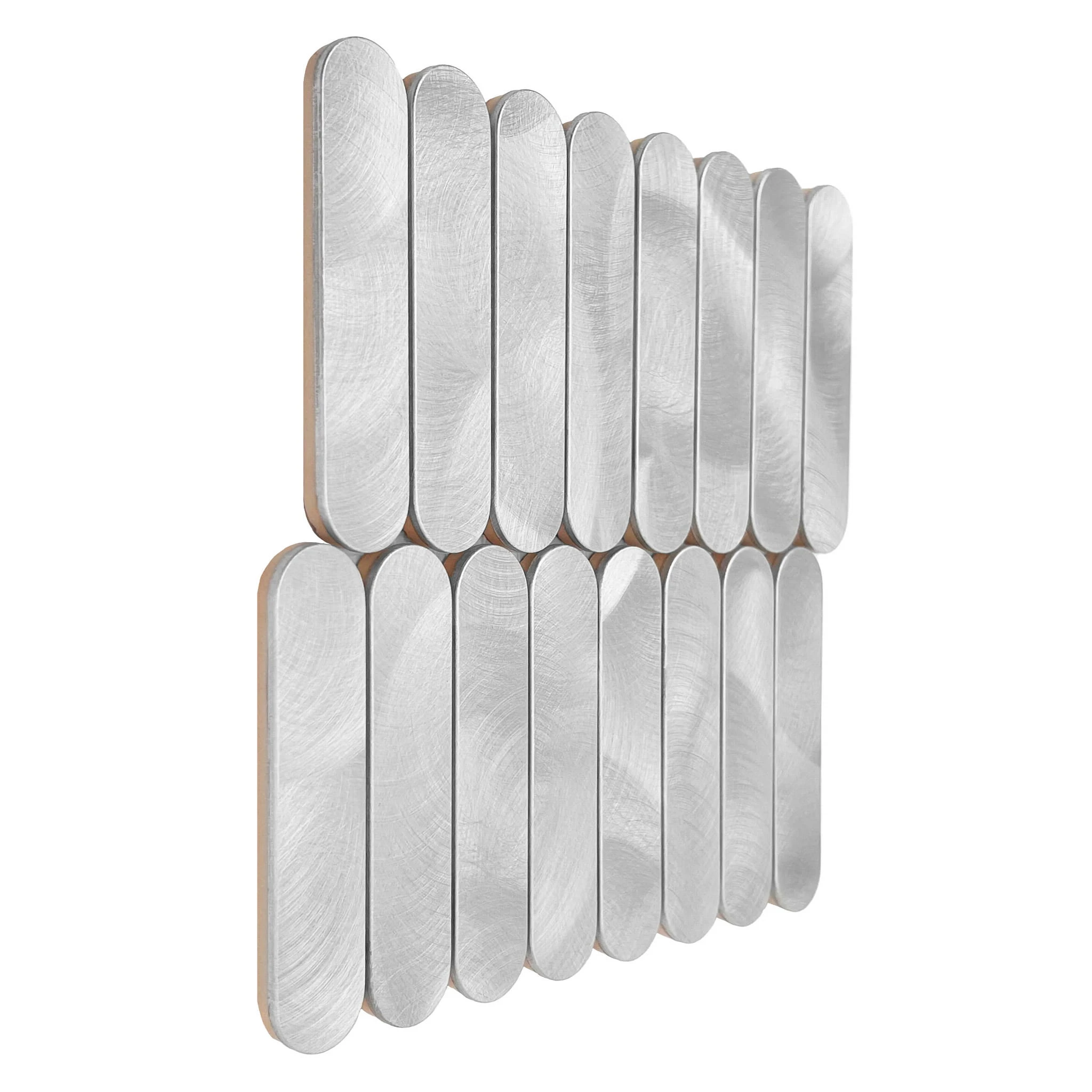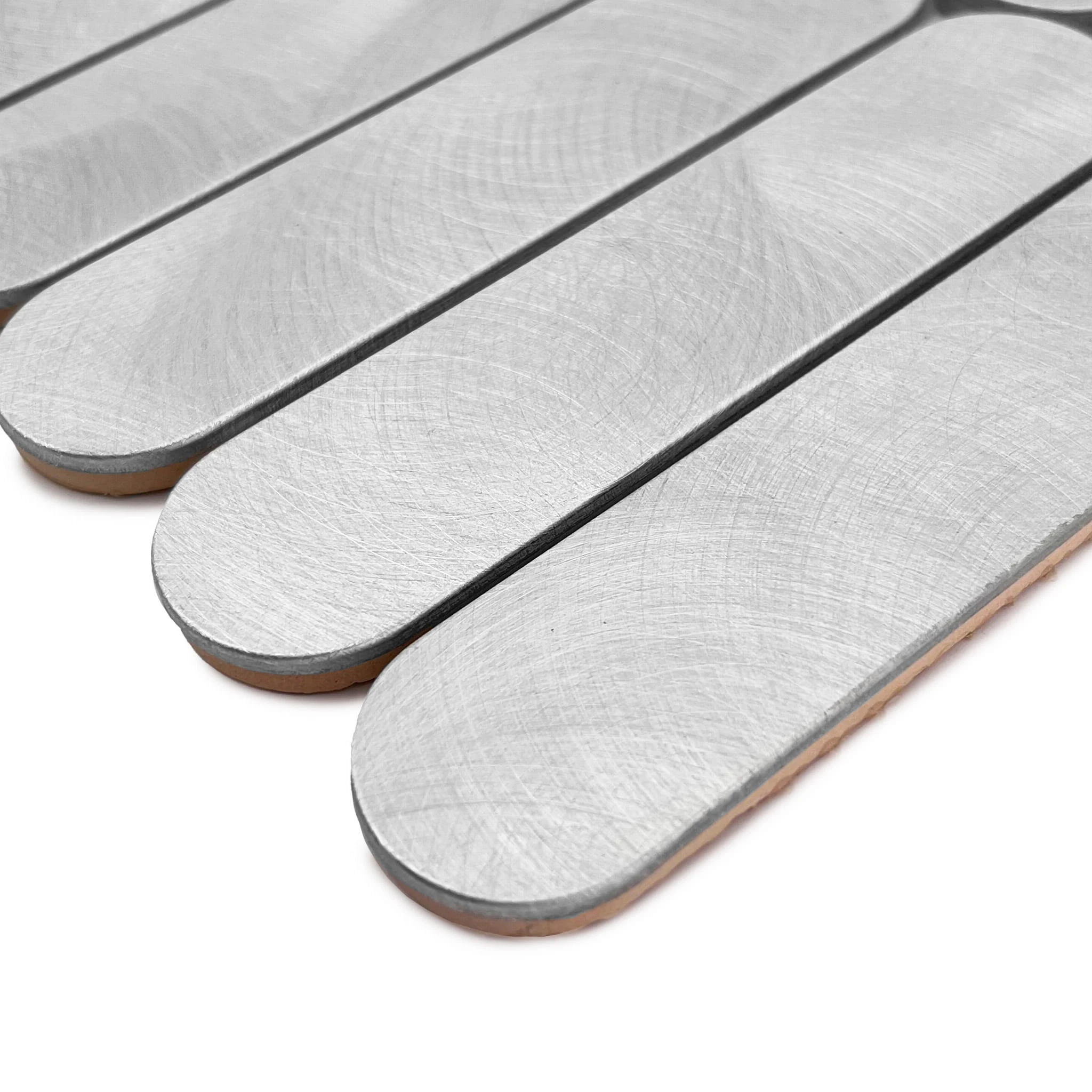 - Mozaika z aluminium szczotkowanego w srebrnym kolorze.