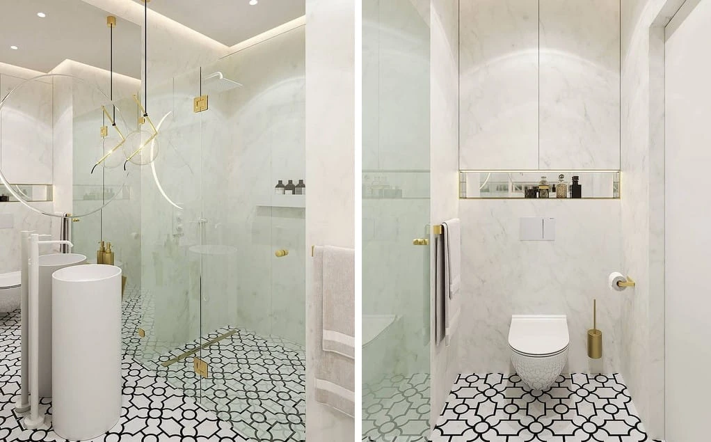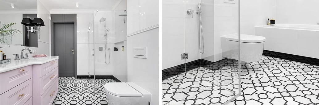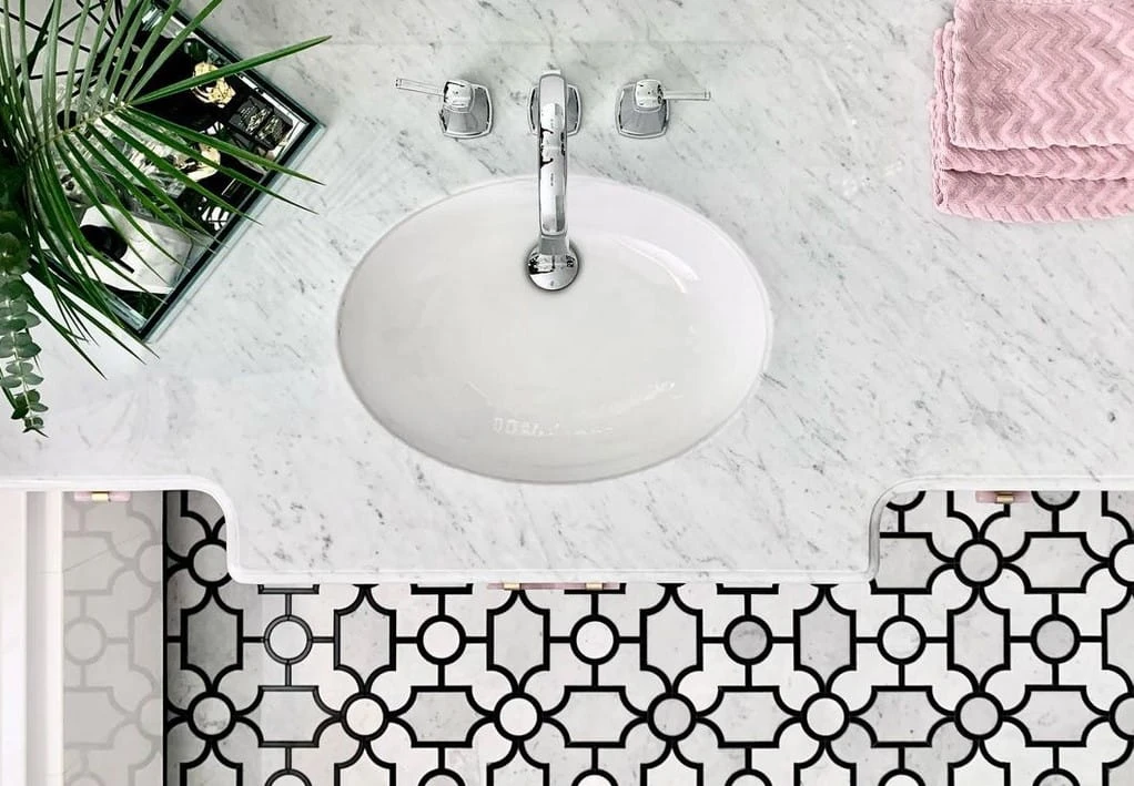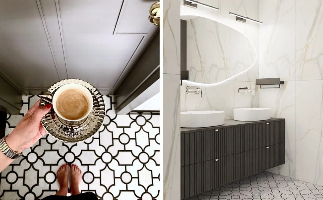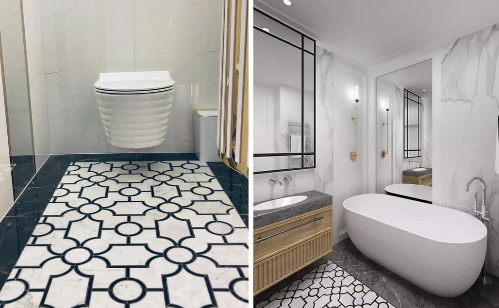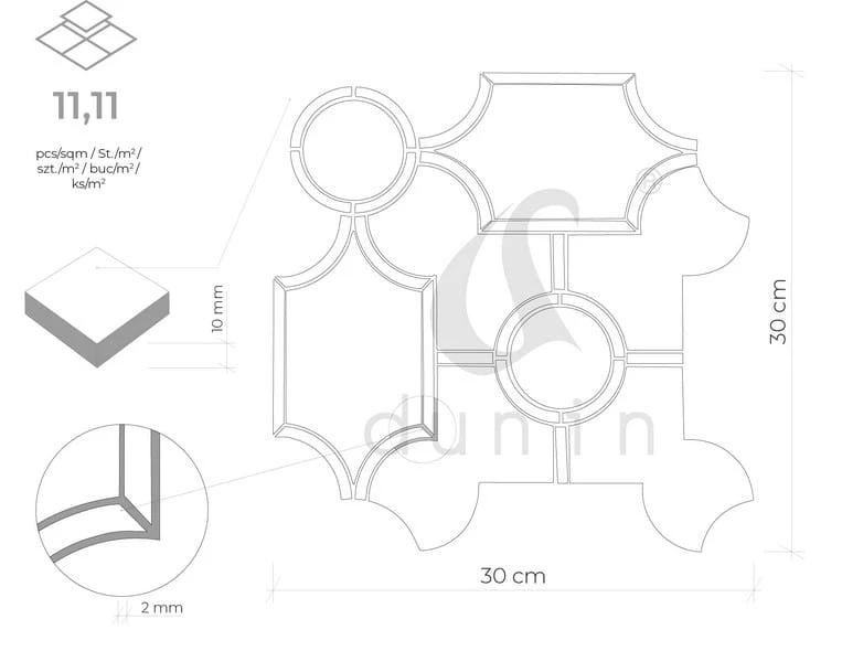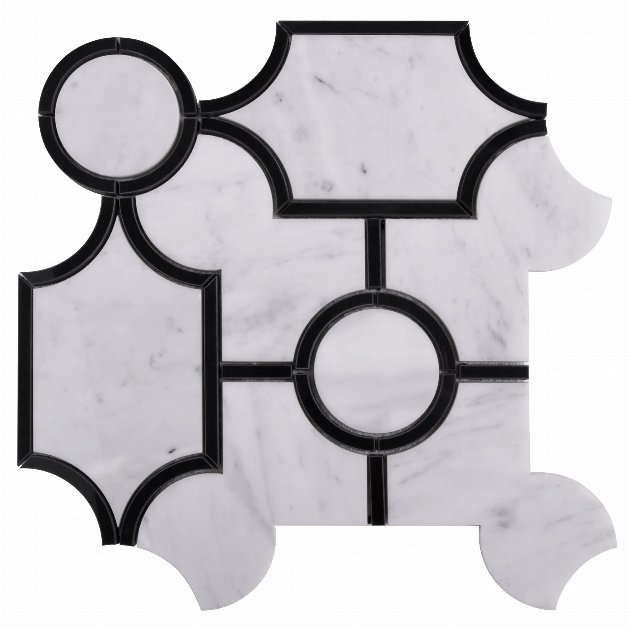 DUNIN Carrara White Manor to kompozycja w stylu art deco, charakteryzującego się geometrycznymi kształtami, stylizowanymi figurami i luksusowymi materiałami. Dzięki technice wycinania waterjet, każdy element wyróżnia się dopracowaniem, bez uszczerbienia żadnej z krawędzi.