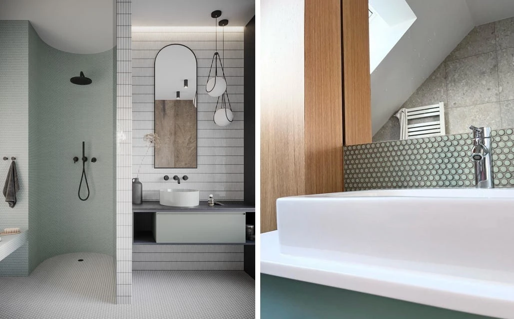 Kolekcja DUNIN Penny & Twig to mozaika gresowa, która wyróżnia się niebanalnym zestawieniem okrągłych płytek "Miss Penny Round" w stylu dropsa candy i prostokątnych elementów "Mr. Twig" w stylu finger lub stick. Dostępna w intrygujących barwach bieli, intensywnego granatu, mięty i matowego złota, stanowi oryginalny element wykończeniowy wnętrz.