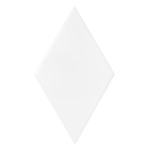 Białe, matowe płytki ceramiczne w kształcie rombu, które można dowolnie zestawiać z innymi płytkami z kolekcji Rombic, tworząc ciekawe wzory, bawiąc się fakturą.
