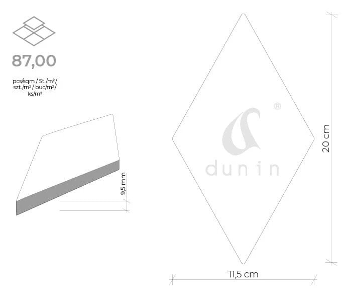 Kolekcja DUNIN Rombic oferuje płytki matowe w dwóch kolorach: czarnym i białym. Są dostępne w czterech wersjach: płaskiej oraz w trzech geometrycznych wzorach. Płytki gresowe z tej kolekcji są szczególnie polecane do obłożenia ścian, nadając wnętrzom nowoczesny i stylowy wygląd.