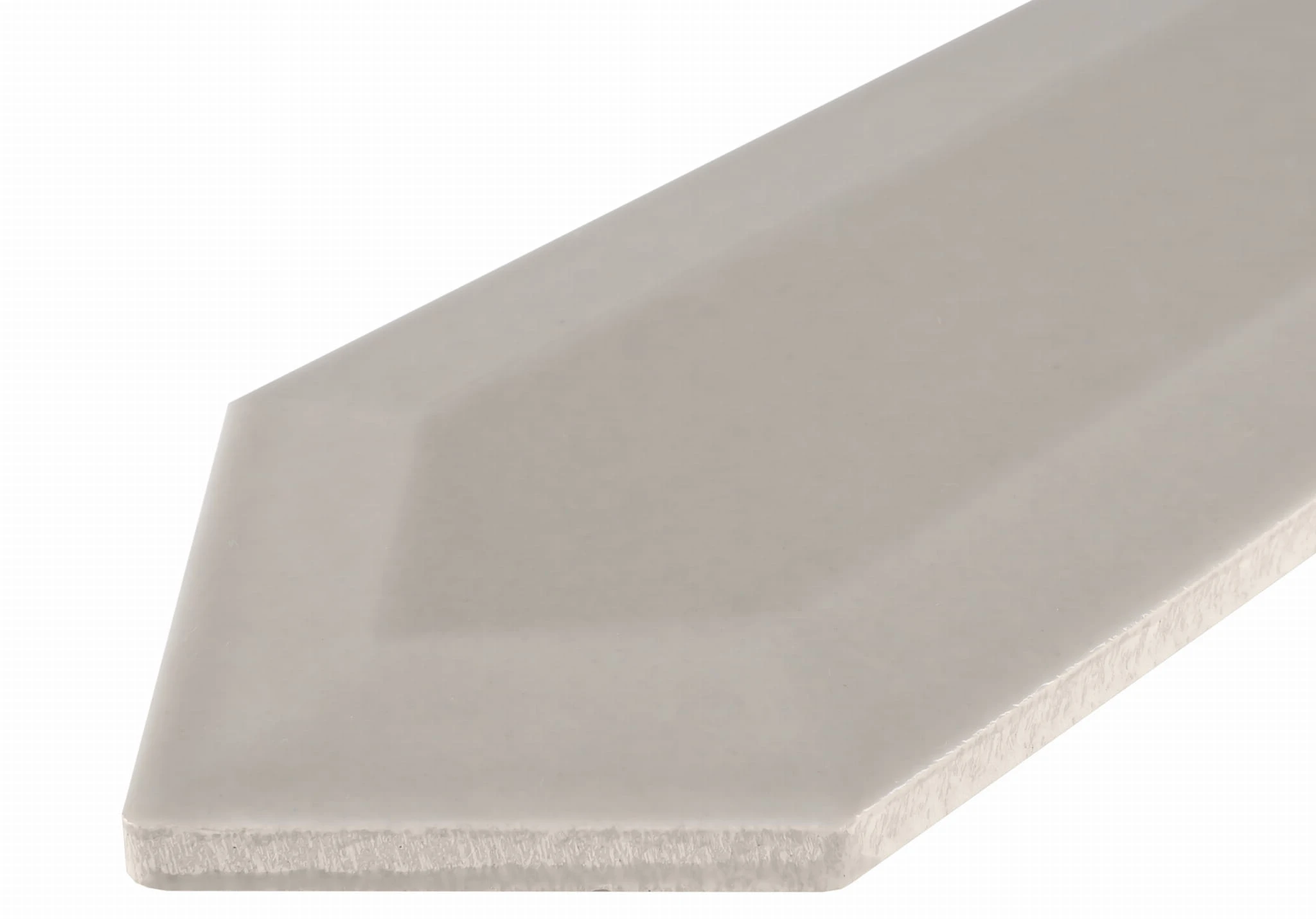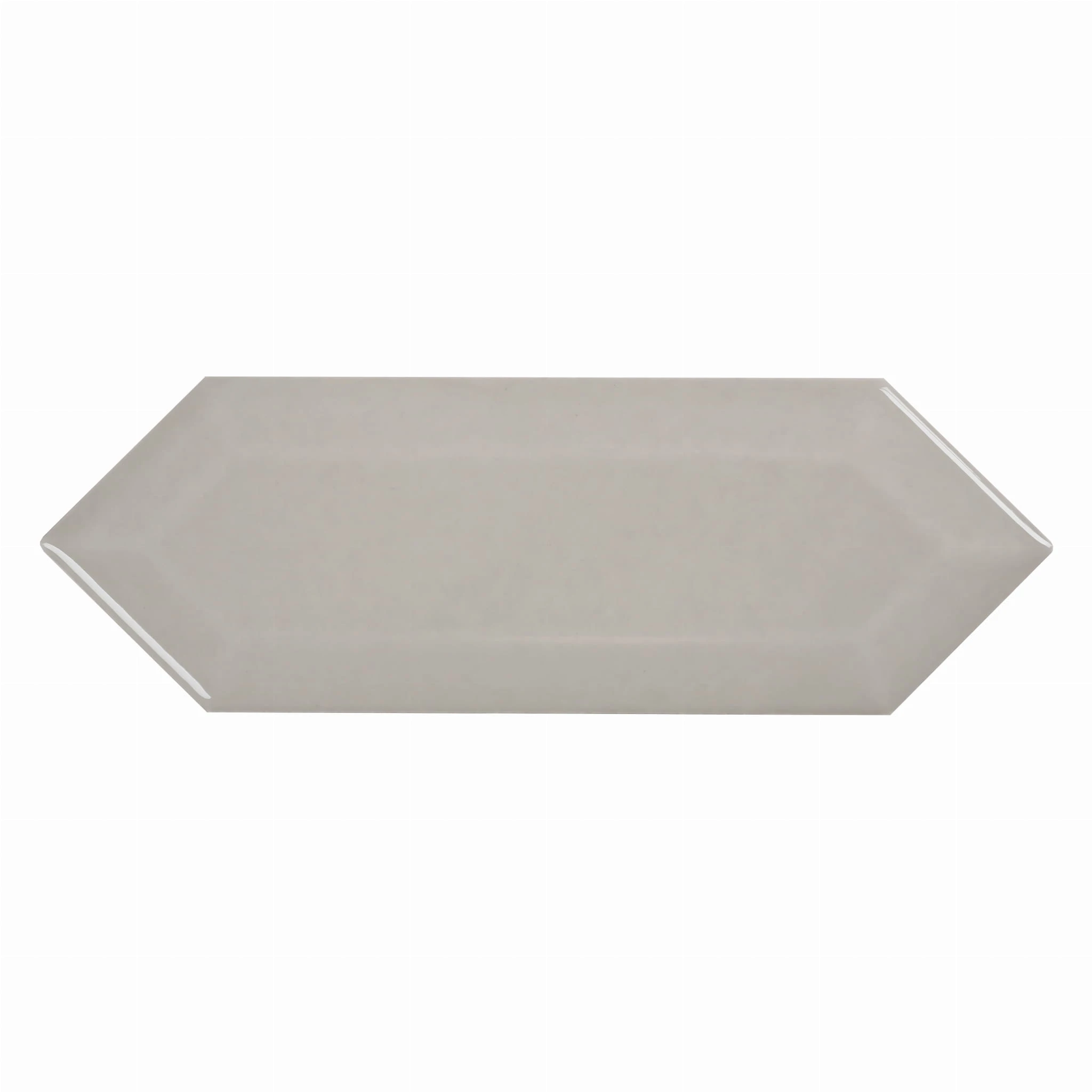 Błyszcząca, beżowa płytka ceramiczna w kształcie przedłużonego heksagonu. Nowoczesny i ponadczasowy design.