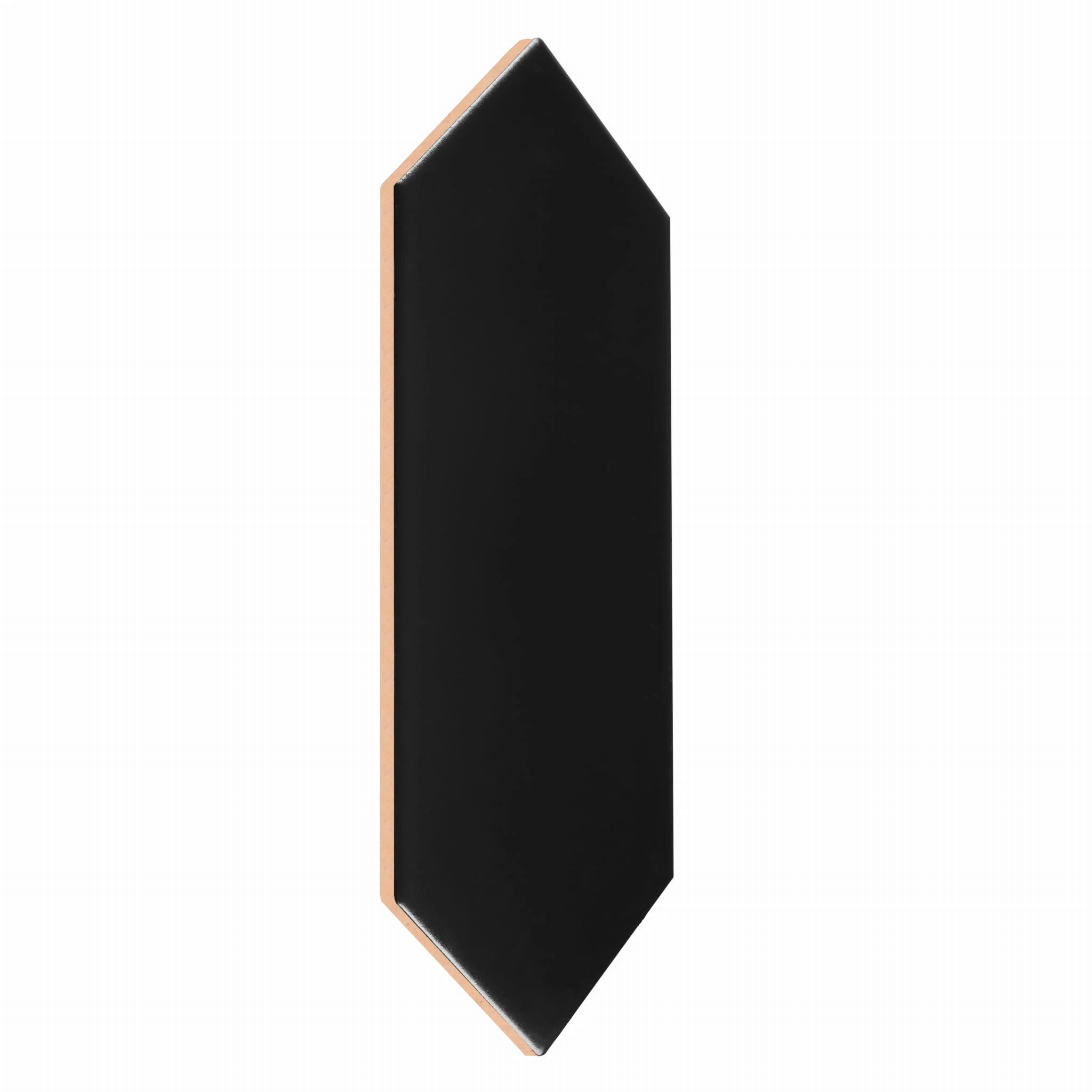 Matowa, czarna płytka ceramiczna w kształcie przedłużonego heksagonu. Nowoczesny i ponadczasowy design.
