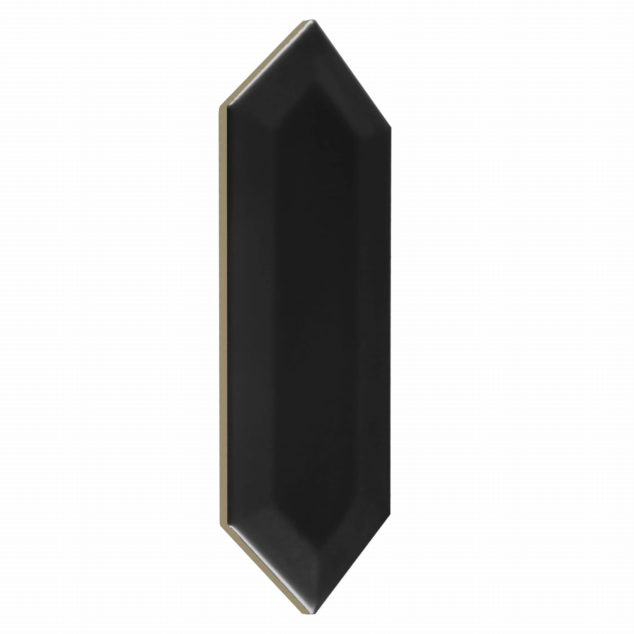 Matowa, czarna płytka ceramiczna w kształcie przedłużonego heksagonu. Nowoczesny i ponadczasowy design.