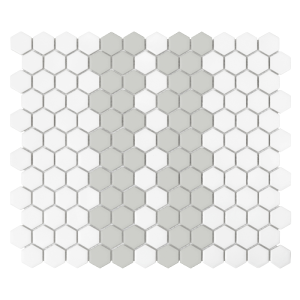 DUNIN Mini Hexagon Stripe 2.1.A matt to połączenie białej bazy oraz szerokiego pasa  w kolorze szarości, który został przedzielony białym akcentem. Zestawienie będzie idealnie pasować zarówno na podłodze, jak i ścianach.