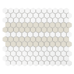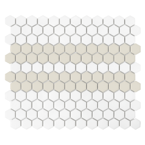 DUNIN Mini Hexagon Stripe 2.C matt to połączenie białej bazy oraz szerokiego pasa  w kolorze beżu, który został przedzielony białym akcentem. Zestawienie będzie idealnie pasować zarówno na podłodze, jak i ścianach.