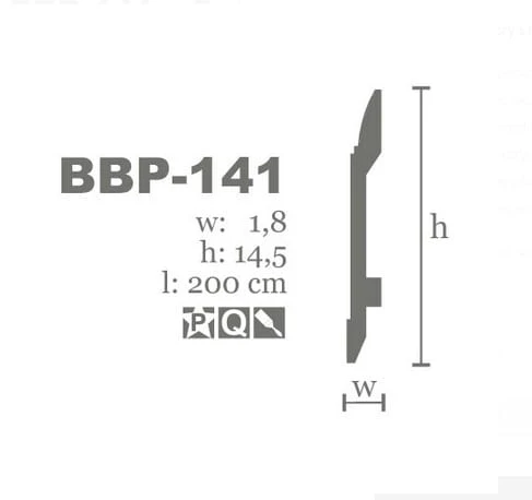 BBP-141 listwa przypodłogowa stanowi funkcjonalny i estetyczny element wykończenia wnętrz, łączący ściany i podłogi. Ten stylowy dodatek każdej aranżacji poza walorami dekoracyjnymi jest niezwykle praktyczny – maskuje kable, przewody elektryczne i szczeliny dylatacyjne. Listwa DUNIN BBP-141 wykonana z wysokiej jakości, twardego poliuretanu jest lekka, łatwa w montażu i odporna na wilgoć i uszkodzenia. Pomalowana farbą podkładową.