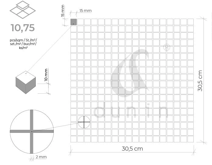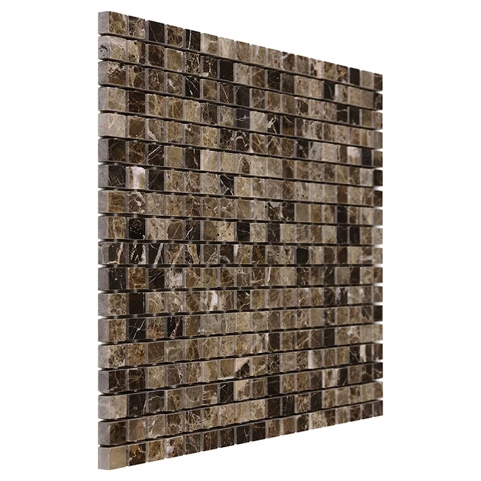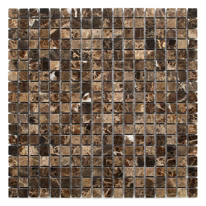 Emperador 15 to kompozycja brązowych kwadratów o średnicy 15 mm, z serii Travertine & Emperador. Mozaika jest wykonana z kamienia naturalnego, jakim jest marmur i charakteryzuje się polerowaną powłoką z widocznymi przerostami. Seria jest wyjątkową propozycją ze względu na prostą, choć bogatą estetykę. Głębokie, naturalne wzory idealnie wpasują się na ścianę jak i podłogi.