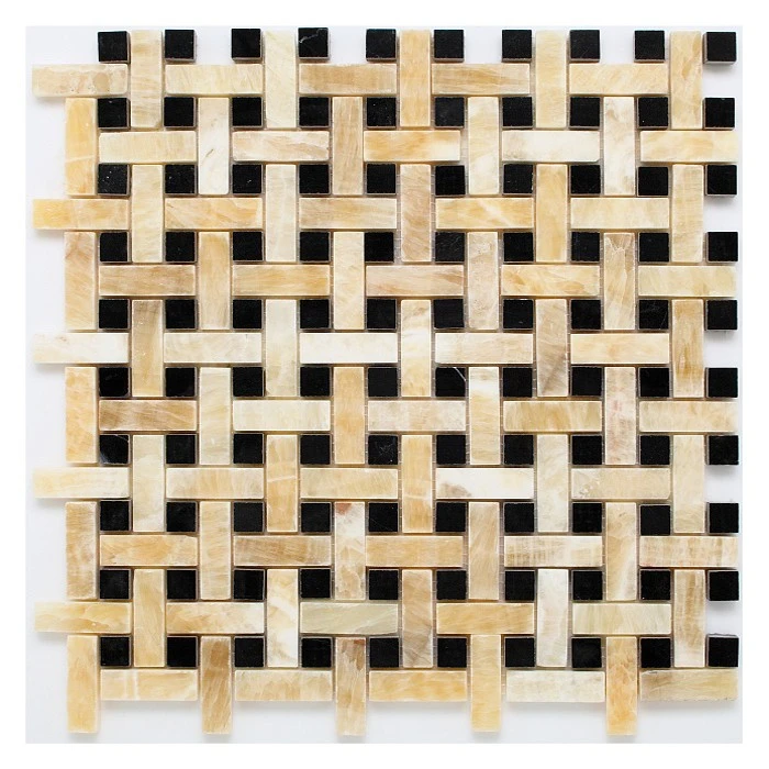 DUNIN Honey Onyx BW01 to mozaika z serii ZEN w stylu art deco. Kompozycja łączy w sobie mix materiałów i kolorów, a dokładnie marmur z onyxem. Wykonana z naturalnych kamieni, zachwyca swoją elegancją i niepowtarzalnym charakterem. Połączenie miodowo-złotych i czarnych barw tworzy unikalny wzór, który idealnie sprawdzi się w nowoczesnych i klasycznych wnętrzach.