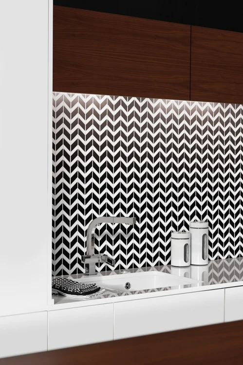 Kolekcja DUNIN Black & White ma rozmaite oblicza. Jej jedną „twarzą” są jednak ułożone na siatce w postaci mozaiki małe kwadraty, heksagony lub płytki w kształcie jodełki. Z drugiej strony w tej serii nie brakuje zdecydowanie bardziej fantazyjnych propozycji, tworzących kreatywne wzory, wymykające się designerskim schematom. Szczególnie dobrze jest to widoczne w mozaikach dwukolorowych. Są one pełne dynamizmu oraz nieoczywistych połączeń, które hipnotyzują odbiorcę. Wybór wzornictwa jest na tyle bogaty, że bez problemu można dobrać mozaiki DUNIN Black & White idealnie skrojone wedle własnego gustu. Niezależnie od wyboru są to w 100% eleganckie produkty, subtelnie balansujące na granicy różnych stylów. Dzięki nim mieszkanie lub dom zachwyci wielu!