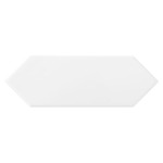 Błyszcząca, biała płytka ceramiczna w kształcie przedłużonego heksagonu. Nowoczesny i ponadczasowy design.