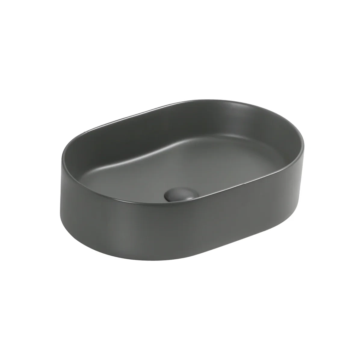 EMPORIA ROSIE Umywalka ceramiczna, nablatowa, 53x37x13,5 cm, bez przelewu,EMPORIA-8588A-MDG ciemny szary mat