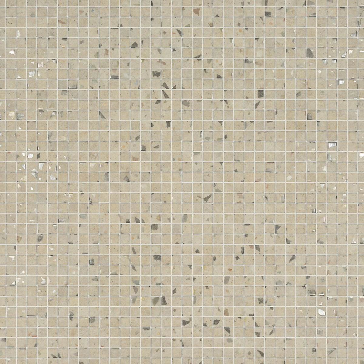 Terrazzo Gravel 25: Ponadczasowe piękno terrazzo odrodzone w szklanej mozaice. Kolekcja, która reinterpretuje klasykę i przekształca ją w mozaiki ze szkła pochodzącego z recyklingu. Kolekcja Terrazzo dostępna jest w rozmiarach 25 mm, 50 mm oraz w formie specjalnych elementów. Łączy matowe i błyszczące wykończenia, oferując szeroki wachlarz możliwości.