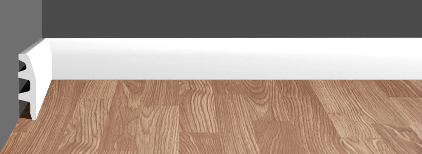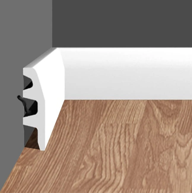 BBP-072 listwa przypodłogowa stanowi funkcjonalny i estetyczny element wykończenia wnętrz, łączący ściany i podłogi. Ten stylowy dodatek każdej aranżacji poza walorami dekoracyjnymi jest niezwykle praktyczny – maskuje kable, przewody elektryczne i szczeliny dylatacyjne. Listwa DUNIN BBP-072 wykonana z wysokiej jakości, twardego poliuretanu jest lekka, łatwa w montażu i odporna na wilgoć i uszkodzenia. Pomalowana farbą podkładową.